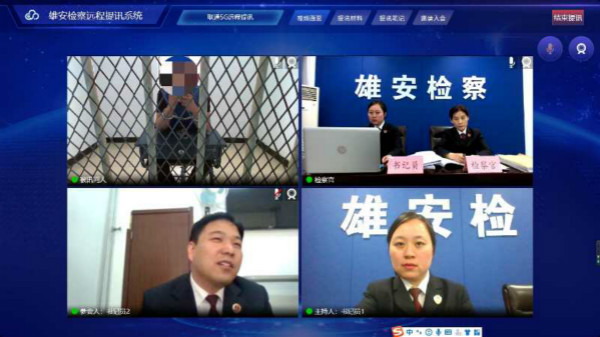 在整個(gè)庭審過(guò)程中,審判員、檢察官及上訴人身處三地,其中,審判員在雄安新區(qū)中級(jí)人民法院法庭,檢察官在檢察院視頻室,上訴人在看守所視頻室,一起通過(guò)5G遠(yuǎn)程網(wǎng)絡(luò)視頻共同參與庭審。
