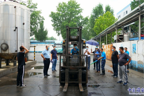 檢查組由雄安新區(qū)綜合執(zhí)法局副局長李保生帶隊,實地對該化工企業(yè)的生產車間設備使用狀況進行檢查。針對檢查中發(fā)現(xiàn)的問題,李保生會同相關工作人員召開了現(xiàn)場辦公會。