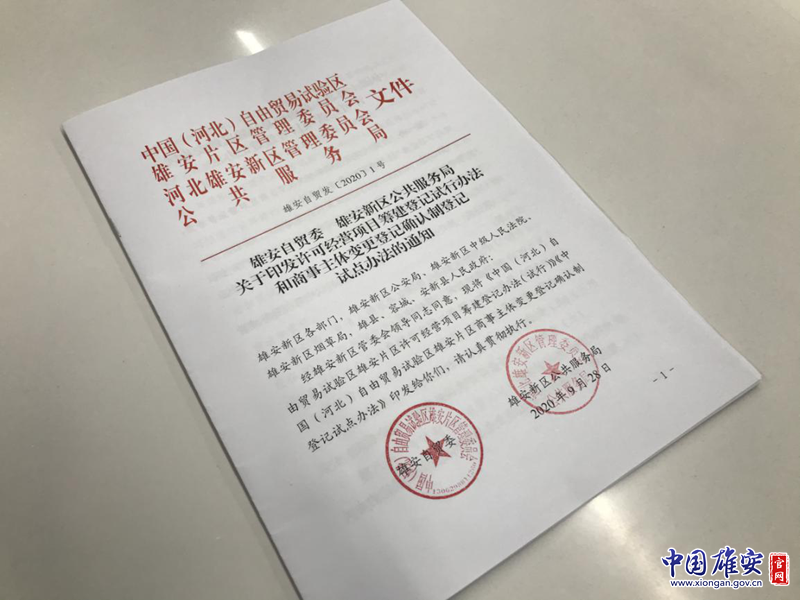 《中國(guó)(河北)自由貿(mào)易試驗(yàn)區(qū)雄安片區(qū)許可經(jīng)營(yíng)項(xiàng)目籌建登記辦法(試行)》《中國(guó)(河北)自由貿(mào)易試驗(yàn)區(qū)雄安片區(qū)商事主體變更登記確認(rèn)制登記試點(diǎn)辦法》印發(fā)。中國(guó)雄安官網(wǎng)記者毛鶴然 攝