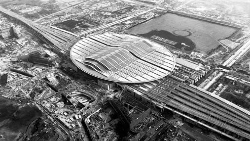 現(xiàn)場施工人員介紹,雄安站設(shè)計(jì)理念按綠色客站要求進(jìn)行設(shè)計(jì),綠色設(shè)計(jì)亮點(diǎn)主要體現(xiàn)在三個“一體”:站城一體、站橋一體、建構(gòu)一體,節(jié)約空間的同時,使人們出入站和換乘其他交通工具更加便捷和人性化。