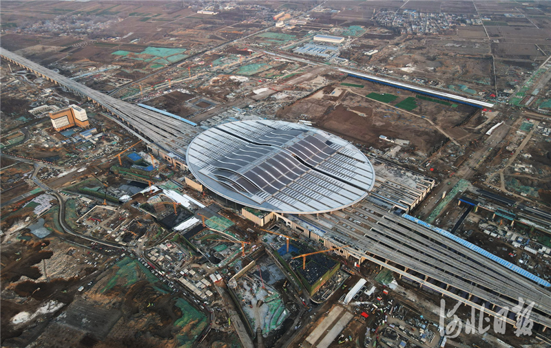 2020年11月30日拍攝的建設(shè)中的京雄城際鐵路雄安站。(資料圖)