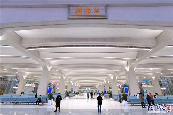 京雄城際鐵路雄安站開(kāi)通當(dāng)天站內(nèi)情況。中國(guó)雄安官網(wǎng)記者高盟 攝
