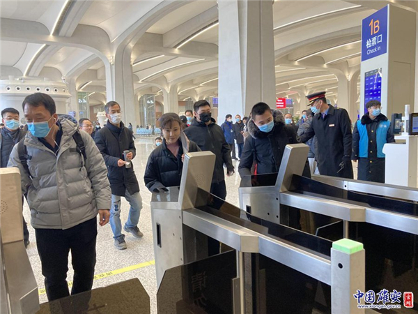 志愿者在雄安站迎接旅客進(jìn)站。中國(guó)雄安官網(wǎng)記者劉東堯 攝