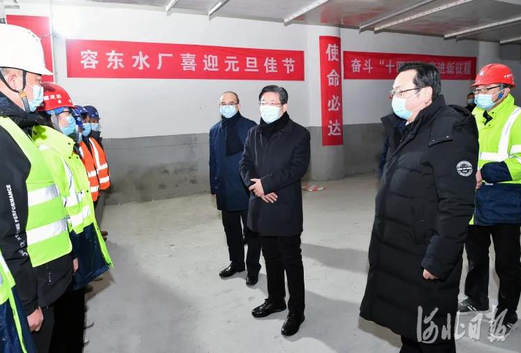 1月1日,在2021年新年的第一天,省委書記、省人大常委會主任王東峰到雄安新區(qū)調(diào)研慰問。省委副書記、省長許勤參加調(diào)研慰問。這是王東峰、許勤在容東片區(qū)再生水廠一期工程建設(shè)現(xiàn)場,聽取工程進展情況匯報,看望慰問一線建設(shè)者。河北日報記者趙威 攝