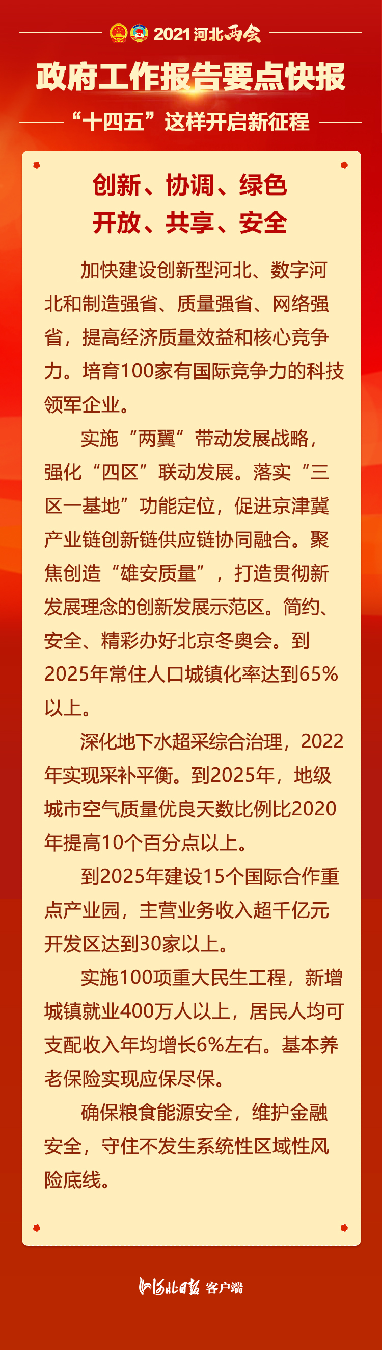 2021河北兩會(huì)·政府工作報(bào)告要點(diǎn)快報(bào) |“十四五”河北這樣開(kāi)啟新征程