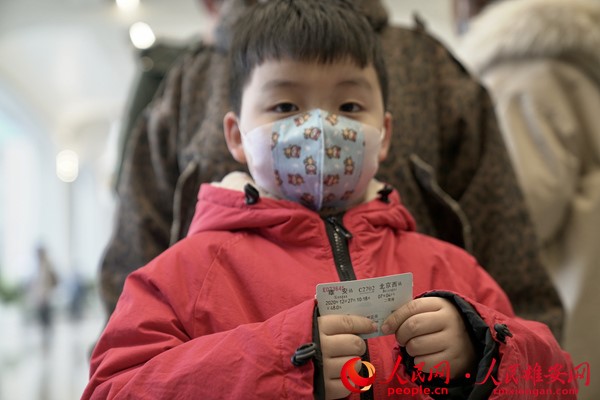 2020年12月27日上午,京雄城際鐵路全線(xiàn)開(kāi)通運(yùn)營(yíng),一位小朋友手里拿著雄安到北京西的車(chē)票。人民網(wǎng) 宋燁文攝