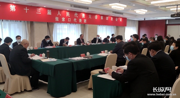 張家口代表團的代表們正在審議。長城網(wǎng)記者 趙嬌瑩 攝