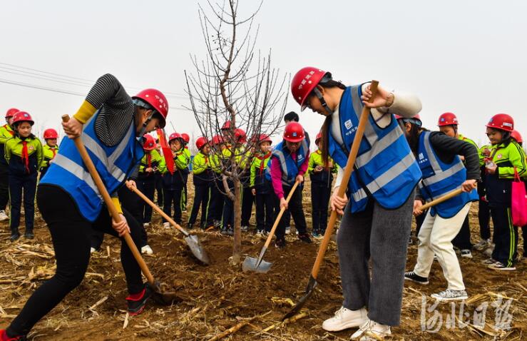 植樹節(jié)到來之際,中建二局與東張楚小學(xué)聯(lián)合在雄安“千年秀林”舉行“播種綠色、播種文明”植樹活動(dòng),共同栽下“雄安樹”“園丁樹”“心愿樹”,為雄安“千年秀林”添新綠。雄安新區(qū)設(shè)立以來,已累計(jì)造林約41萬畝。河北日?qǐng)?bào)記者耿輝攝影報(bào)道