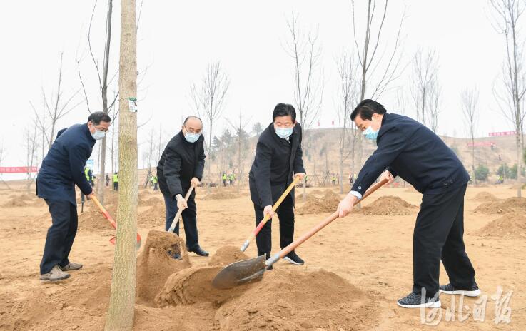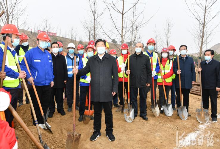2021年3月12日是第43個植樹節(jié)。上午,省委書記、省人大常委會主任王東峰,省委副書記、省長許勤,省政協(xié)主席葉冬松,省領導袁桐利、高志立、張國華、范照兵在雄安新區(qū)雄安郊野公園開展義務植樹活動,帶頭推進國土綠化行動。省四大班子其他領導成員、駐冀部隊領導同志等同步在石家莊市滹沱河北岸開展植樹造林。