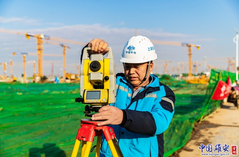 雄安新區(qū)雄東片區(qū)A單元安置房及配套設(shè)施項(xiàng)目建設(shè)工地測(cè)量工楊文全。中國(guó)雄安官網(wǎng)記者高盟 攝