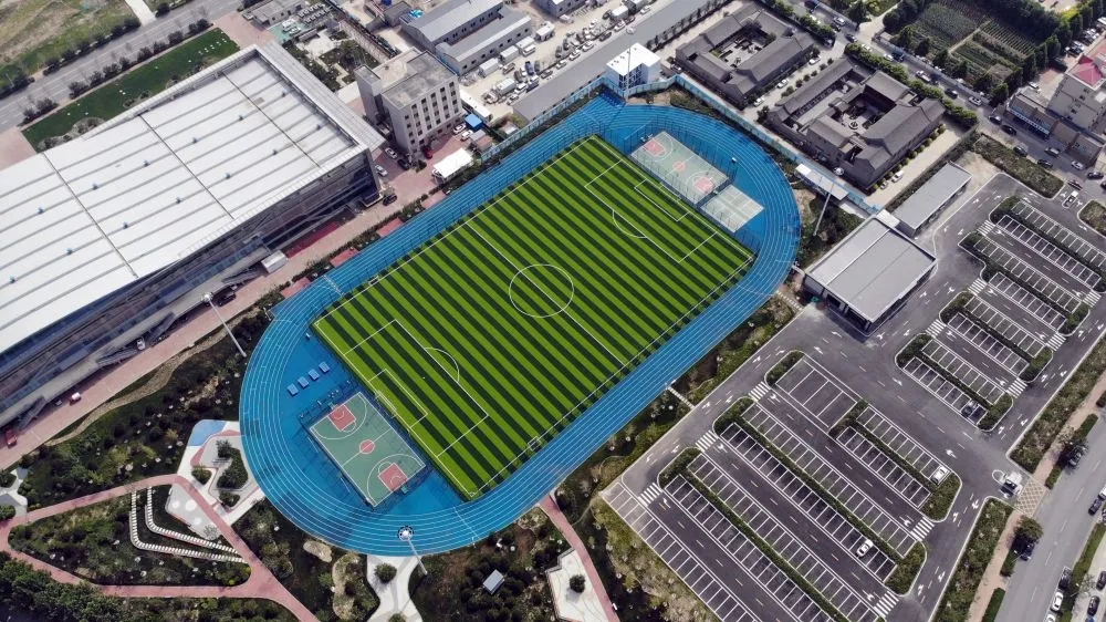 這是7月9日拍攝的容城縣體育公園(無人機照片)。新華社記者駱學峰 攝