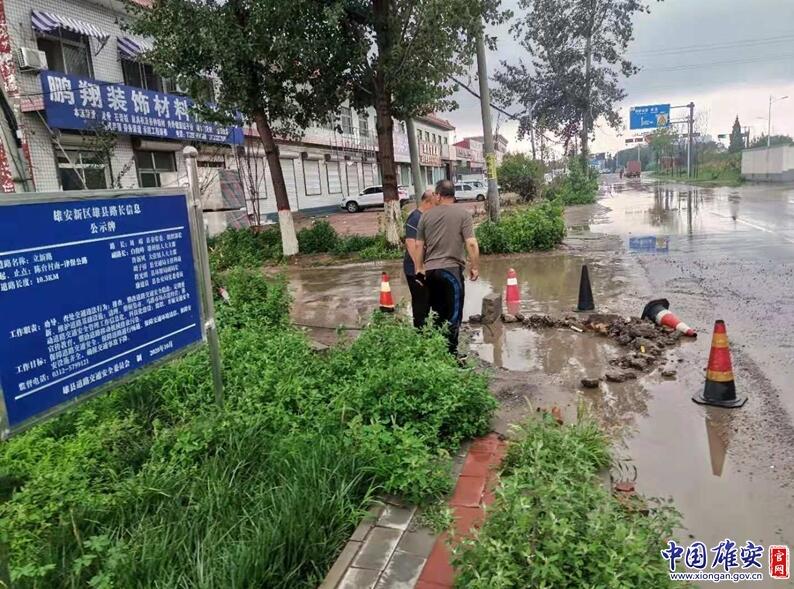 雄縣交通運輸局相關工作人員對路面坑洼處進行圍擋。中國雄安官網(wǎng)發(fā)
