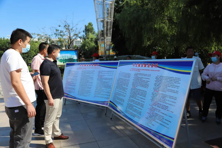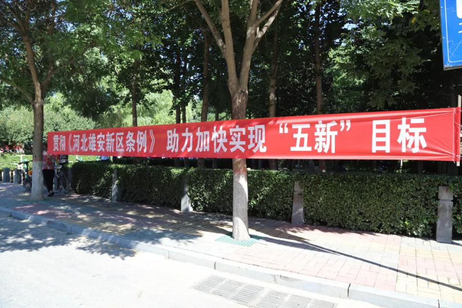 普法宣傳志愿者深入群眾宣傳《河北雄安新區(qū)條例》。