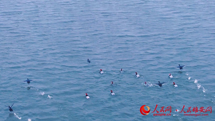 人民網(wǎng)雄安3月24日電 “春江水暖鴨先知?!币坏酱禾?,大批候鳥陸續(xù)抵達(dá)白洋淀,開始筑巢產(chǎn)卵、孵化育雛,11月份再遷徙到南方避寒越冬。日前,在白洋淀水域拍攝到遷徙歸來的國家一級(jí)保護(hù)動(dòng)物青頭潛鴨,鳳頭鸊鷉和大種群的國家“三有”保護(hù)動(dòng)物紅頭潛鴨、白骨頂雞,它們?cè)诘碇袝秤?、嬉戲、追逐、覓食,萌態(tài)十足。