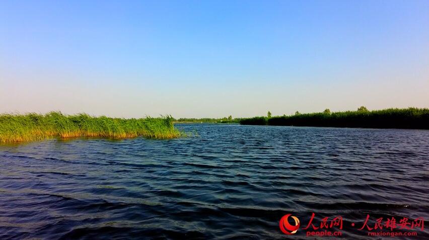 清澈的白洋淀與蘆葦,形成一幅藍(lán)綠交織的美好畫卷。高騰攝