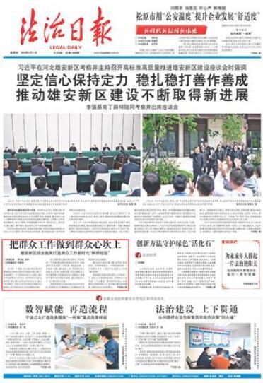 據(jù)《法治日報》記者了解,近年來,雄安新區(qū)一手抓陣地建設(shè),一手建體制機制,一手提服務(wù)水平,三管齊下打造群眾工作的“雄安樣板”。