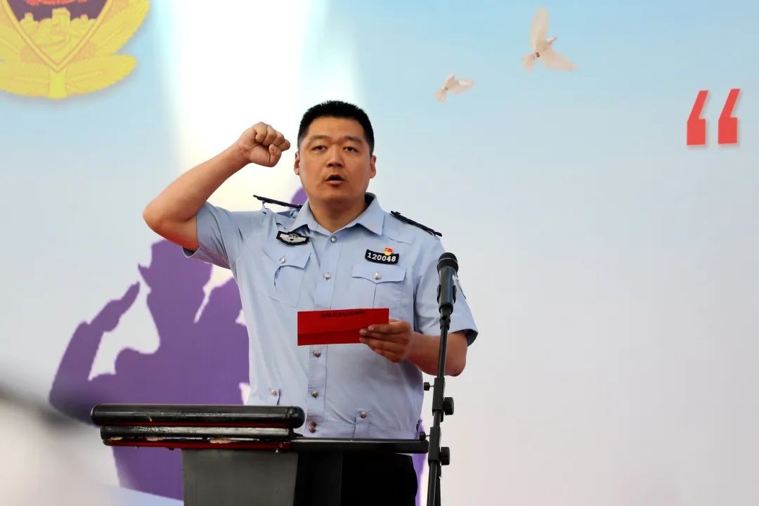 開幕式現(xiàn)場,全體人員隊列整齊、警容嚴(yán)整,莊嚴(yán)奏唱《中華人民共和國國歌》,裁判員代表和運動員代表分別進(jìn)行宣誓。