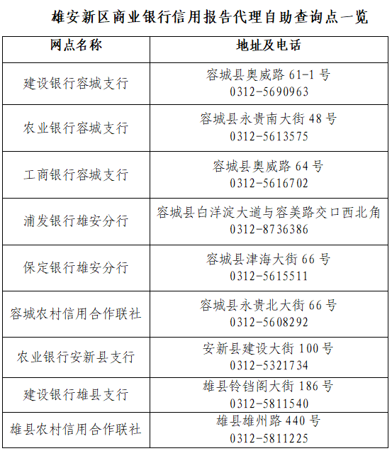 人民網(wǎng)雄安8月11日電 (李兆民)記者從中國人民銀行雄安新區(qū)營業(yè)管理部獲悉,目前雄安新區(qū)商業(yè)銀行信用報(bào)告代理自助查詢點(diǎn)已增至9家,可提供和中國人民銀行同樣版式的信用報(bào)告,而且實(shí)現(xiàn)了個(gè)人及企業(yè)信用報(bào)告一體化查詢功能。