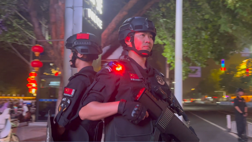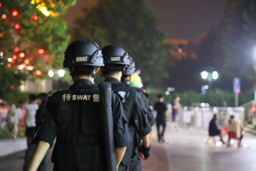 隨著霓虹燈點(diǎn)亮,充滿(mǎn)活力的雄州路在夜色中更加熱鬧,一隊(duì)巡邏民警步伐堅(jiān)定走過(guò)路口。不管是在喧鬧的夜市街區(qū),還是在寧?kù)o的背街小巷,隨處可見(jiàn)民警巡邏、警燈閃爍。
