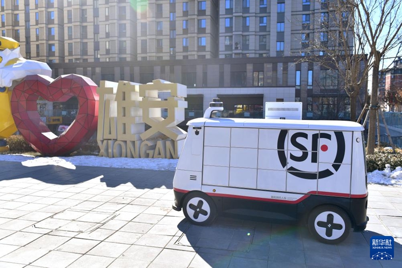 1月22日,無(wú)人駕駛配送車(chē)在派送郵件。新華社記者王曉 攝