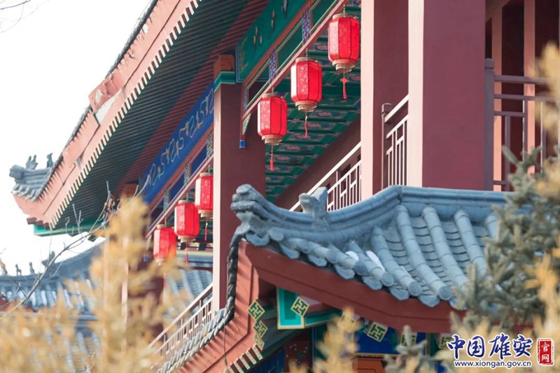 悅?cè)莨珗@南苑仿古建筑掛上了紅燈籠,年味十足。中國(guó)雄安官網(wǎng)李鑫 攝