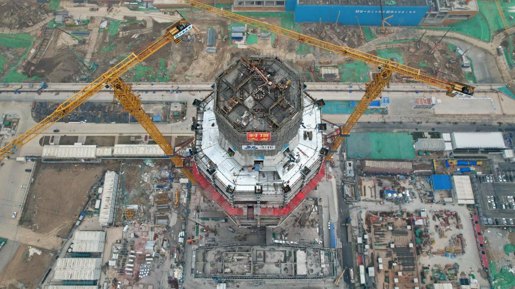 3月27日拍攝的中國中化大廈建設(shè)現(xiàn)場(無人機照片)。新華社記者牟宇 攝