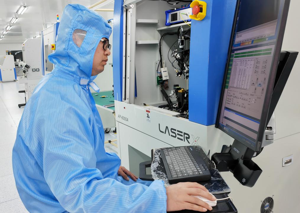 3月28日,芯聯(lián)新(河北雄安)科技有限公司工人在車間內(nèi)調(diào)試設(shè)備。新華社記者楊世堯 攝