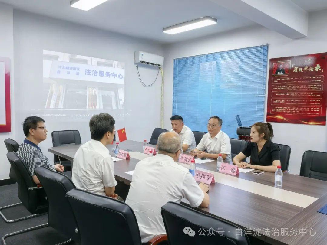 8月20日,河北雄安新區(qū)白洋淀法治服務中心高級顧問(原司法部全面依法治國研究中心副主任)李富成、新區(qū)黨群工作部副部長孫嘉鵬、雄安新區(qū)政務服務中心副主任毛捍軍到中心調研指導工作。