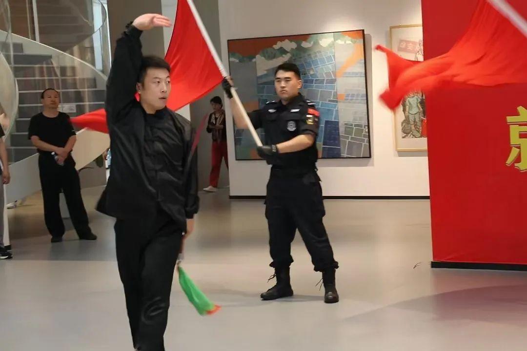 觀展結(jié)束后,伴隨著“我和我的祖國(guó),一刻也不能分割。無論我走到哪里,都流出一首贊歌……”歌聲的響起,參展人員移步展廳中央,雄安公安文聯(lián)的表演者們伴隨著莊嚴(yán)激昂的旋律依次從人群中走出,《我和我的祖國(guó)》《追尋》《多情的土地》《我愛你中國(guó)》,一首首振奮人心的歌曲,唱出了慶祝新中國(guó)75周年華誕的喜悅,唱出了對(duì)祖國(guó)的自豪與驕傲。