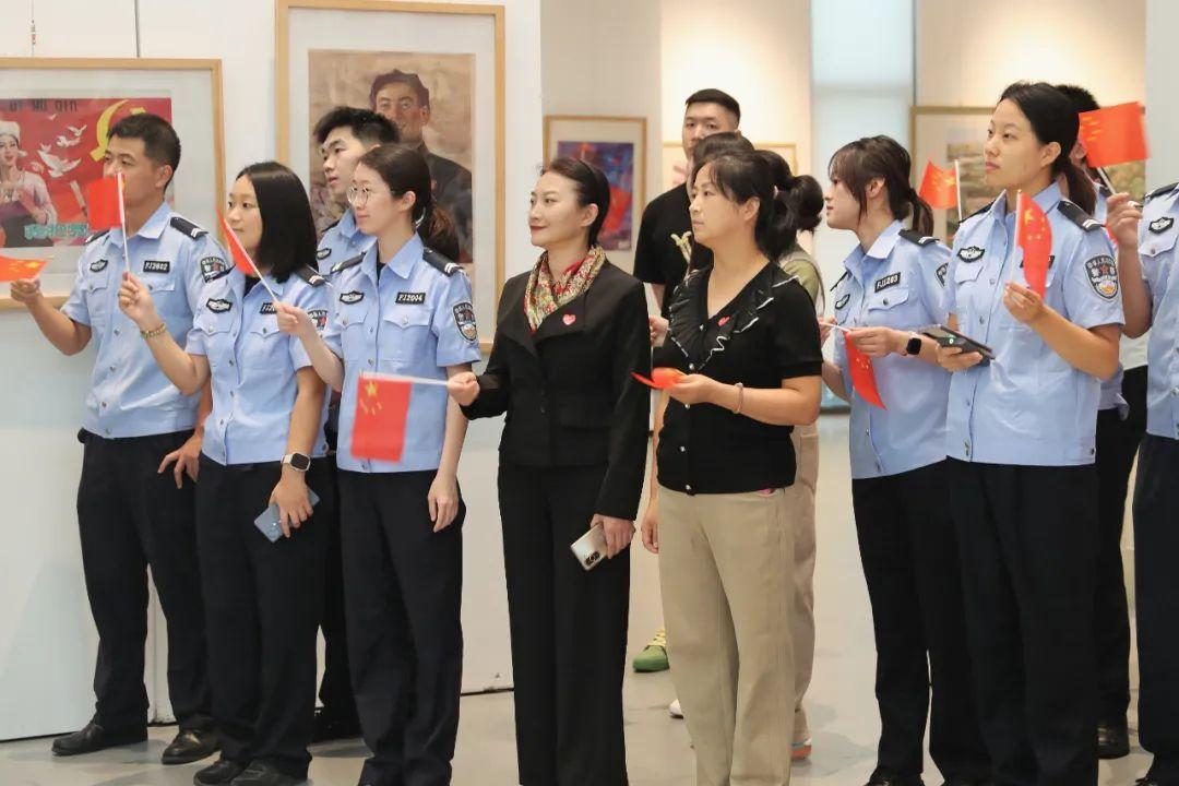 此次展覽主要展示反映新中國(guó)成立以來一系列重大歷史事件宣傳畫、年畫,以及描繪新區(qū)建設(shè)發(fā)展的部分美術(shù)作品,百余幅作品如同歷史畫卷般在大家眼前徐徐展開。民輔警穿梭其間,仿佛穿越時(shí)空隧道,親眼見證了新中國(guó)從百?gòu)U待興到繁榮昌盛的壯麗圖景,一筆一劃,都仿佛是祖國(guó)前進(jìn)的鏗鏘足音,在大家心中激蕩起了強(qiáng)烈的共鳴。大家或駐足凝視,或低語(yǔ)交流,分享著各自對(duì)新中國(guó)發(fā)展歷程的感慨與認(rèn)識(shí)。