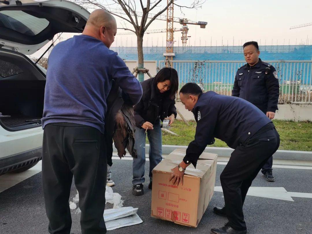 近日,雄安站分局民警接到群眾報警稱,在雄安站中試基地發(fā)現(xiàn)一只受傷大鳥,接警后,民警迅速趕到現(xiàn)場。經(jīng)仔細查看發(fā)現(xiàn),受傷“大鳥”未發(fā)現(xiàn)明顯外傷,因身體極度虛弱,已無法飛行。