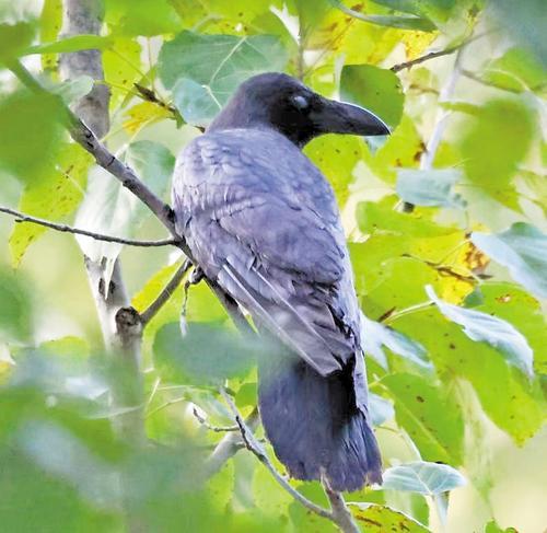 大嘴烏鴉是鴉科鴉屬鳥(niǎo)類(lèi),又叫巨嘴鴉,俗稱(chēng)老鴉、老鴰。該鳥(niǎo)種通體全黑,但頭頂、背、肩、腰及翅上覆羽和內(nèi)側(cè)飛羽具藍(lán)紫色金屬光澤,有粗大的嘴,嘴峰彎曲,峰嵴明顯,嘴基有長(zhǎng)羽,延伸至鼻孔處,額拱起,尾長(zhǎng),呈圓凸?fàn)?。大嘴烏鴉在中國(guó)絕大部分地區(qū)有分布,它們一般棲息于平原至低山的林地,冬季也活動(dòng)于海拔較低的平原以及人類(lèi)的聚居點(diǎn)。