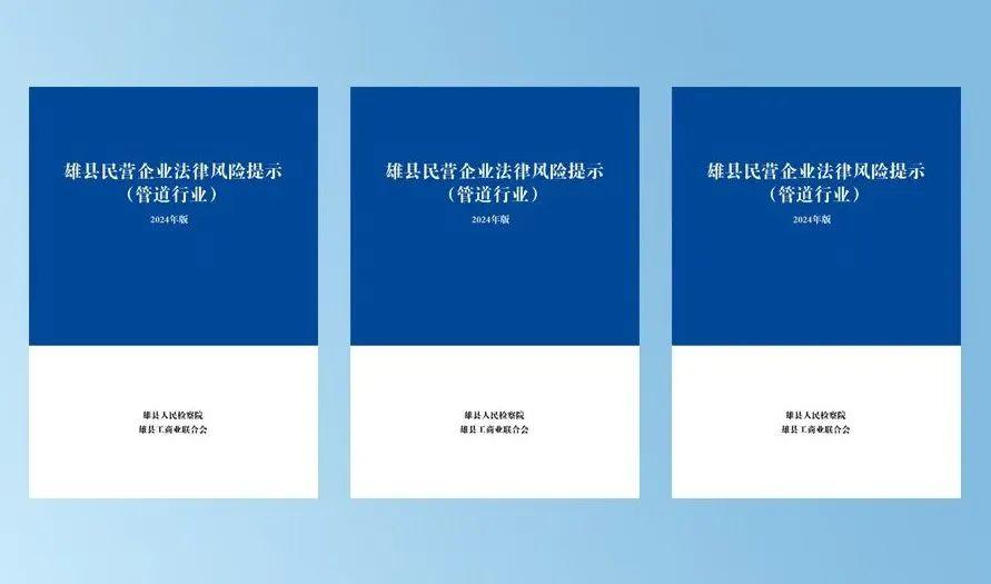1月10日,雄縣管道行業(yè)協(xié)會(huì)2025年年會(huì)召開。會(huì)上,雄縣人民檢察院會(huì)同雄縣工商業(yè)聯(lián)合會(huì)正式發(fā)布《雄縣民營(yíng)企業(yè)法律風(fēng)險(xiǎn)提示(管道行業(yè))2024版》(以下簡(jiǎn)稱《提示》)。