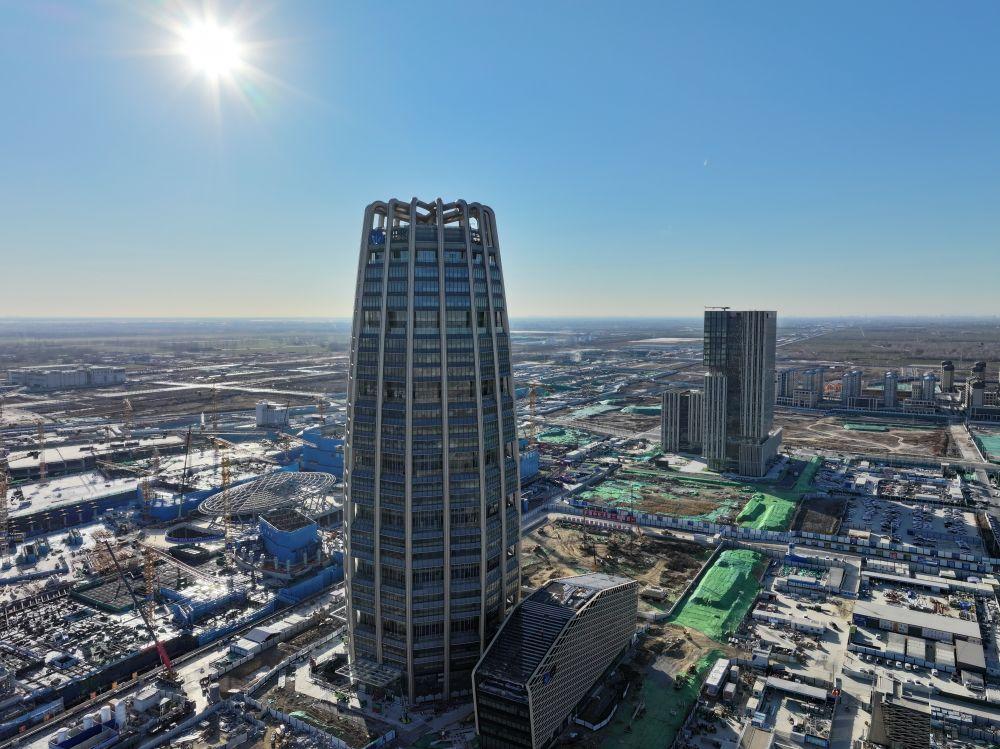 位于雄安新區(qū)啟動(dòng)區(qū)內(nèi)的中國(guó)中化大廈建設(shè)現(xiàn)場(chǎng)(2025年1月9日攝)。新華社記者 牟宇 攝