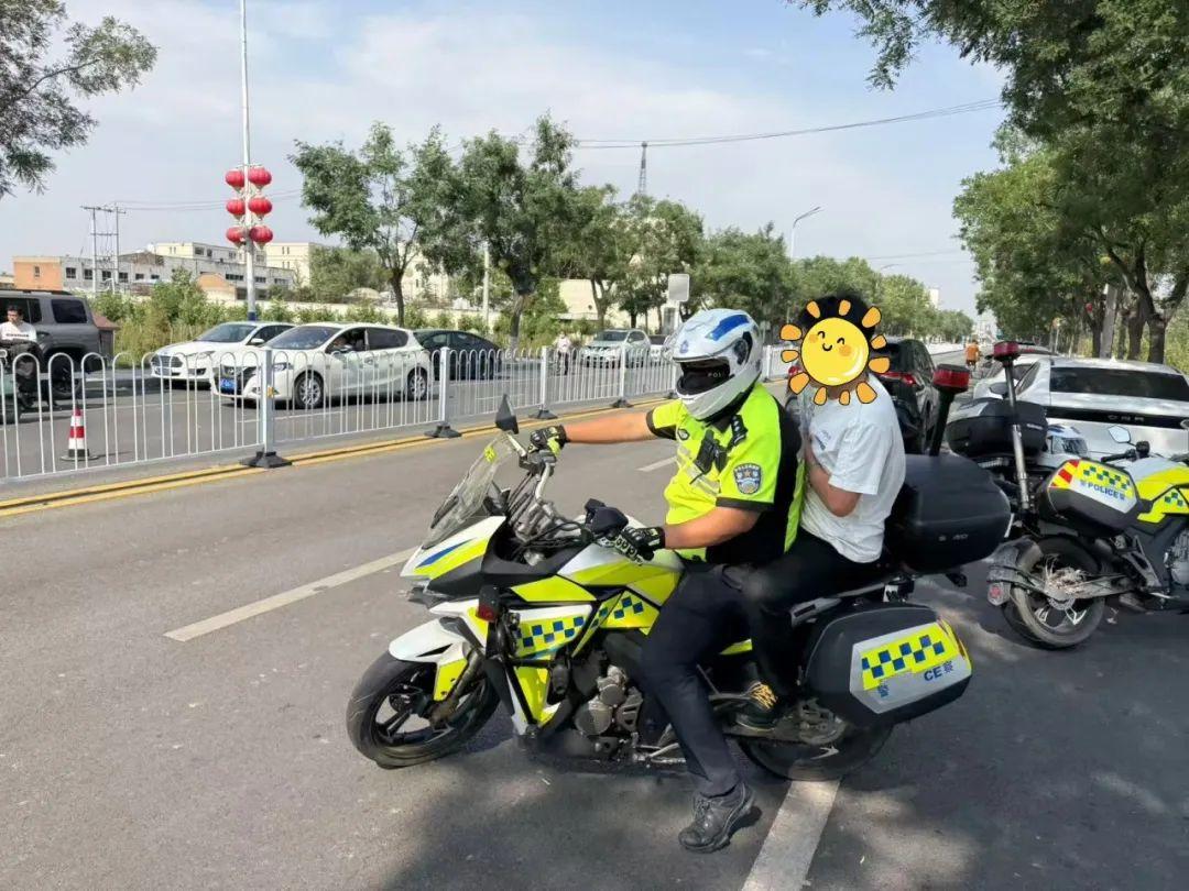 6月7日上午8時52分,安新交警在高考考點管控道路執(zhí)勤時,一輛私家車駛來,司機焦急稱車上的高考考生馬上遲到了,帶隊民警立即安排備勤騎警駕駛摩托車送考生參加考試,順利在考前抵達考點。