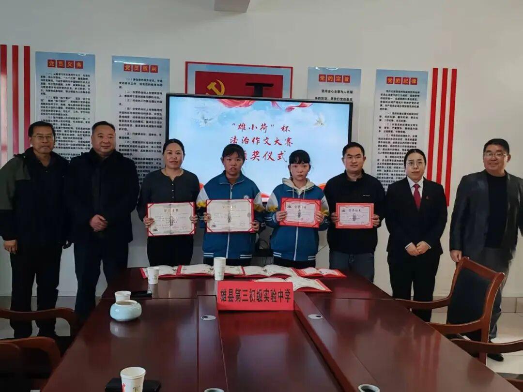 法治的陽光,照耀青春成長之路;文字的力量,承載少年法治夢想。10月24日,隨著“雄小荷”杯法治作文大賽評比結(jié)果的出爐,賽事組委會帶著榮譽(yù)與成果,相繼走進(jìn)雄縣第二、第三初級實(shí)驗(yàn)中學(xué)、雄縣第三高級中學(xué)初中部,為獲獎師生頒獎。