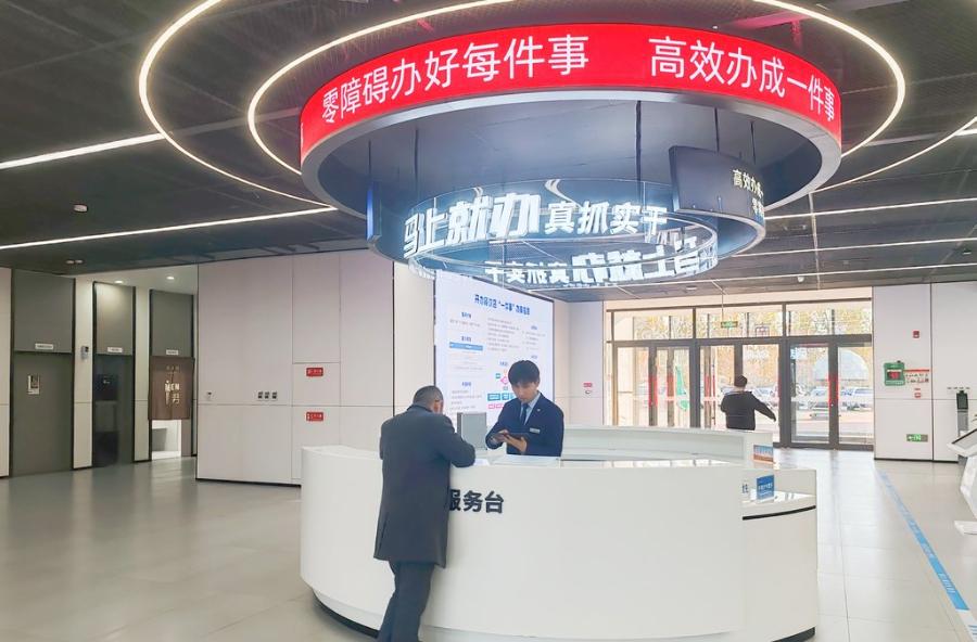日前拍攝的雄安新區(qū)政務(wù)服務(wù)中心。在這里,辦事人只需在取號(hào)機(jī)前刷臉,系統(tǒng)即可自動(dòng)識(shí)別并關(guān)聯(lián)其身份信息,實(shí)現(xiàn)無證取號(hào)。河北日?qǐng)?bào)見習(xí)記者康曉博 攝