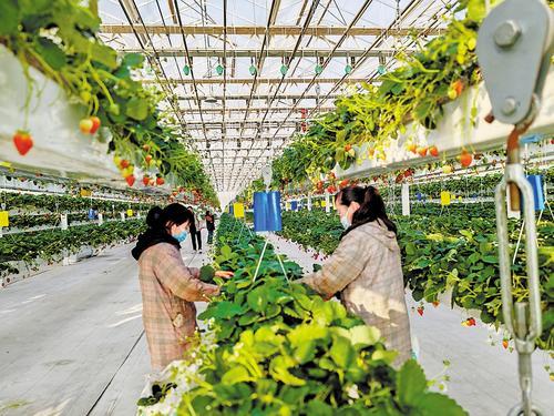 1月15日,雄安新區(qū)高宇農業(yè)園的玻璃溫室內,工作人員正在采摘草莓。 本報見習記者 康曉博攝