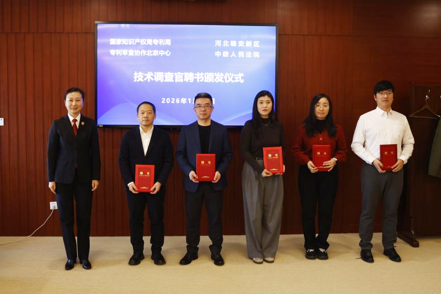 李靜靜在發(fā)言時指出,雄安中院牢記“打造貫徹落實新發(fā)展理念的創(chuàng)新示范區(qū)”的初心使命,充分發(fā)揮司法審判職能,以高質量的知識產(chǎn)權審判護航雄安新區(qū)建設創(chuàng)新之城。雄安知識產(chǎn)權法庭始終致力于健全審判機制、提升專業(yè)能力、深化協(xié)同保護,不斷加強知識產(chǎn)權專業(yè)化審判隊伍建設。本次受聘的技術調查官涵蓋機械、電學、通信、醫(yī)藥生物、化學、光電、材料和外觀設計八大領域,他們的加入進一步增強了雄安中院知識產(chǎn)權專業(yè)化力量,為進一步打造“技術調查+技術咨詢+技術鑒定+專家輔助+專家陪審”“五位一體”的技術事實查明機制,為切實提升技術類案件審判質效提供有力支持。她希望,新任技術調查官要進一步提高政治站位,恪守客觀公正立場,在未來的履職中發(fā)揮專長、貢獻力量,為雄安知識產(chǎn)權審判提供堅實支撐。