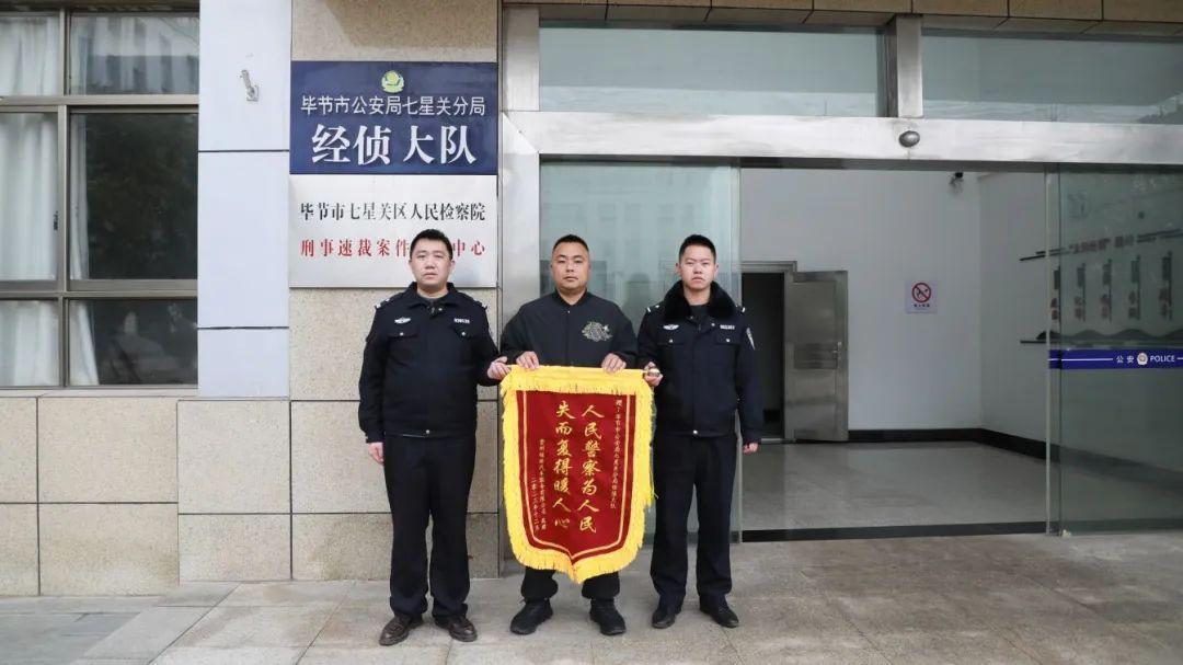 “太感謝七星關(guān)公安分局了!在這么短的時(shí)間內(nèi),把被騙的錢追回來了,我真的太高興了,謝謝你們?!苯眨易≠F州省六盤水的市民張先生來到貴州省畢節(jié)市公安局七星關(guān)分局,將一面寫著“人民警察為人民,失而復(fù)得暖人心”的錦旗送到辦案民警手中,對(duì)辦案民警盡心竭力、快速偵辦的工作作風(fēng)表示由衷地感謝。
