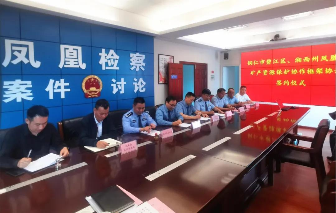 為有效針對跨區(qū)域難以有效打擊盜采礦產(chǎn)資源違法行為,破解行政機關(guān)“單打獨斗”“交界難管”局面。5月9日,碧江區(qū)檢察院聯(lián)合湖南省懷化市鳳凰縣檢察院等兩地8部門簽訂《碧江區(qū)、鳳凰縣礦產(chǎn)資源保護協(xié)作框架協(xié)議(試行)》,對協(xié)作原則及范圍、協(xié)作方式等進行了明確的規(guī)定,建立溝通聯(lián)絡(luò)、信息共享、案件移送、重大案件跨區(qū)域辦理等8個協(xié)同機制。通過發(fā)揮各自職能,加強跨區(qū)域協(xié)作,共同化解礦產(chǎn)資源保護中區(qū)域分割的困難,推動形成礦產(chǎn)資源跨區(qū)域司法保護合力。