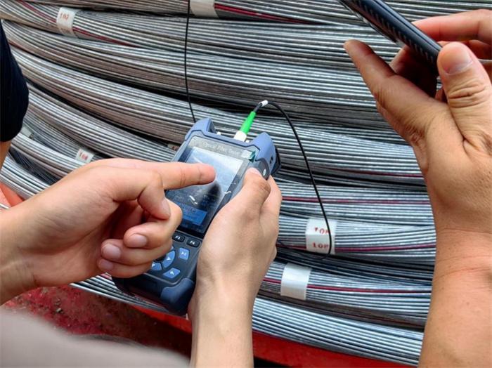 由于智慧纜索光纖成分是二氧化硅,安裝過程精度要求高,施工過程中,六安8標(biāo)現(xiàn)場管理人員和工人聚精會神、精準(zhǔn)調(diào)度,嚴(yán)格控制牽引速度,排查各工序?qū)鈻殴饫w的保護(hù)措施。6日16時(shí)許,智慧纜索成功拉通入鞍后順利通過功能檢測。