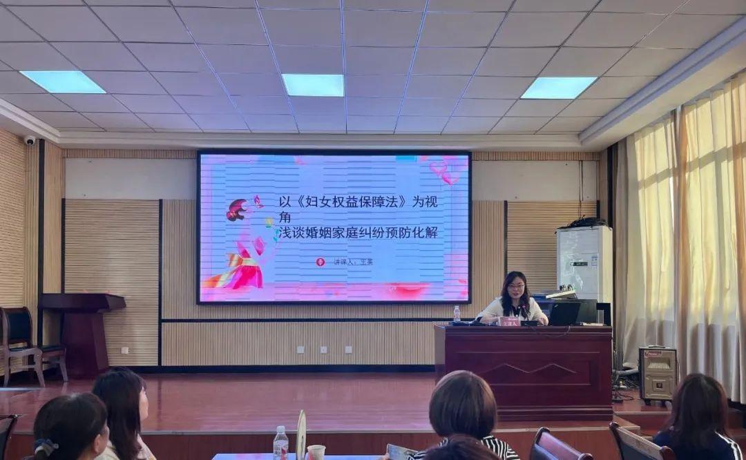 王英以《以〈婦女權(quán)益保障法〉為視角,淺談婚姻家庭糾紛預(yù)防化解》為主題,結(jié)合自身工作經(jīng)驗和審判實踐中的典型案例,用通俗易懂的語言講解婦女權(quán)益保護(hù)相關(guān)法律法規(guī),增強婦聯(lián)干部的法律意識,進(jìn)一步提高婦聯(lián)干部運用法治思維和法治方式維護(hù)合法權(quán)益、化解矛盾糾紛的能力和水平。