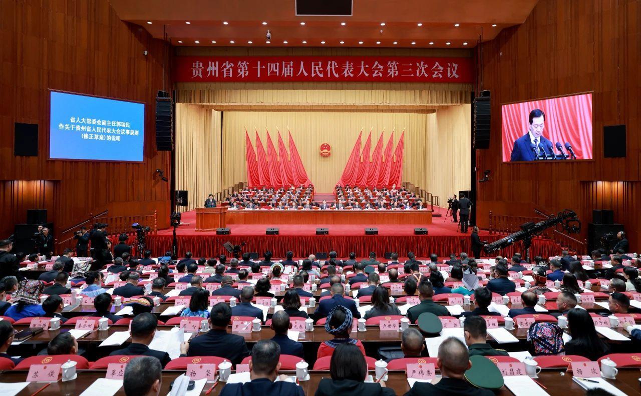 1月19日,貴州省第十四屆人民代表大會第三次會議在貴陽開幕,受貴州省人大常委會委托,貴州省人大常委會副主任郭瑞民作關于貴州省人民代表大會議事規(guī)則修正草案的說明。