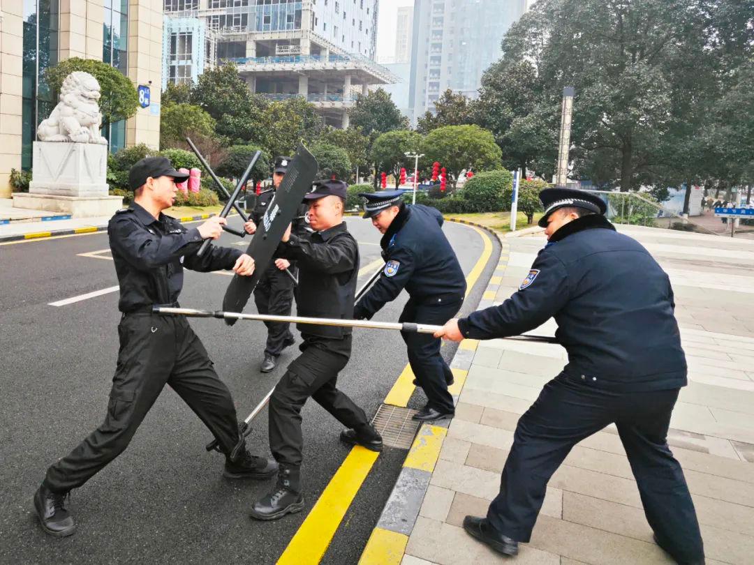 “以練備戰(zhàn)”提升應(yīng)急處置硬實力。在觀山湖區(qū)民生銀行大樓外,一場“反恐演練”正在進行。一名“歹徒”手持利器試圖“闖”入銀行,企圖制造恐慌。銀行安保人員迅速啟動應(yīng)急預(yù)案,與民輔警緊密配合,使用防爆盾、防暴鋼叉等裝備與“歹徒”周旋。與此同時,銀行員工有序疏散客戶,確保人員安全。派出所快速響應(yīng),精準(zhǔn)處置,最終成功制服“歹徒”,化解危機。