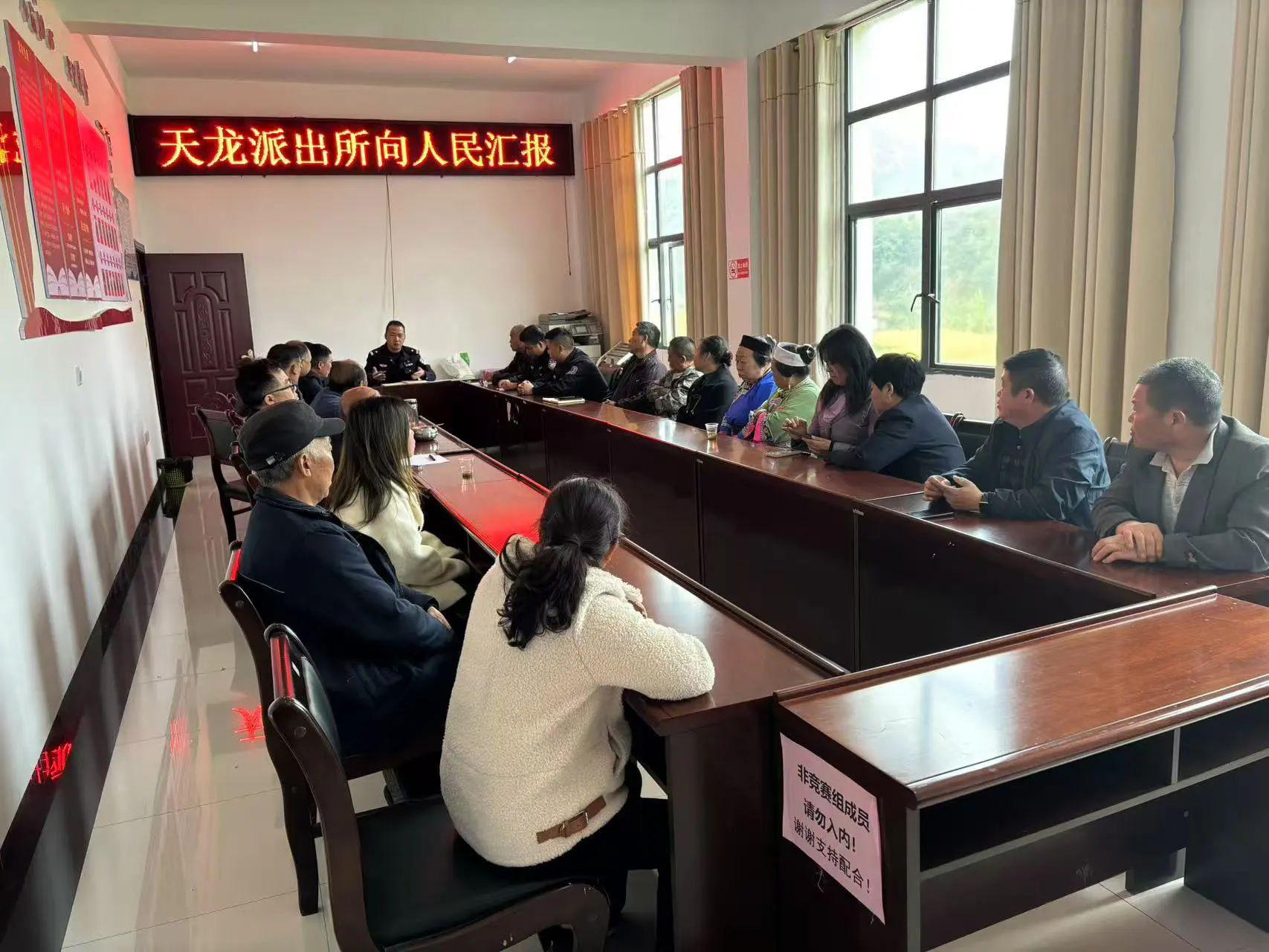 為深化警民聯(lián)動(dòng)機(jī)制,推進(jìn)平安建設(shè)提質(zhì)增效,近日,貴州省安順市平壩區(qū)公安局天龍派出所在天龍鎮(zhèn)天龍村開(kāi)展“向人民匯報(bào)”警民懇談活動(dòng)。政府相關(guān)部門(mén)代表、村委干部、個(gè)體工商戶(hù)及群眾代表等30余人齊聚一堂,共話轄區(qū)治安治理新成效,共謀平安建設(shè)新路徑。