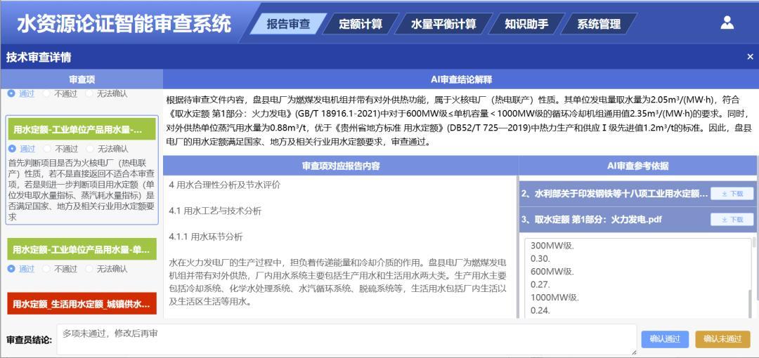 水資源論證報告智能審查系統(tǒng)的應(yīng)用,可以避免出現(xiàn)因報告書質(zhì)量差而開展專家審查的不利局面,可以大大提高審查效率,同時也提升了審查的規(guī)范性、公正性和科學(xué)性,提高水利新質(zhì)生產(chǎn)力。