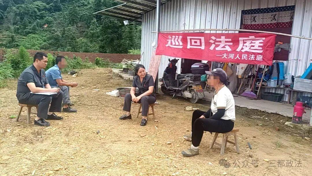 近日,受持續(xù)強(qiáng)降雨影響,貴州省黔南州三都縣多地遭遇洪澇災(zāi)害,道路損毀,群眾出行受阻,多起民事糾紛當(dāng)事人也因?yàn)?zāi)無(wú)法到庭,維權(quán)陷入困境。因此,三都縣人民法院大河人民法庭迅速啟動(dòng)“汛情司法保障機(jī)制”,開(kāi)展巡回審判,將法庭搬到群眾家門(mén)口,用實(shí)際行動(dòng)詮釋司法為民。