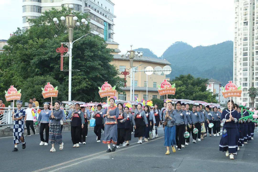 巡游長龍從荔波中央城前浩蕩出發(fā),來自各鄉(xiāng)鎮(zhèn)(街道)五十余支隊(duì)伍的“姑媽”們,從四面八方趕來相聚,組成體現(xiàn)本地特色民族文化的方陣,正整裝待發(fā)。她們身穿各式各樣的民族服飾,臉上洋溢著喜悅的笑容。