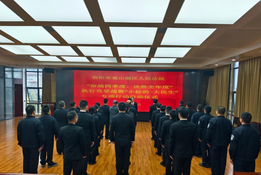 為進(jìn)一步認(rèn)清當(dāng)前執(zhí)行工作形勢、正視任務(wù)差距、堅決兌現(xiàn)既定目標(biāo),確保全年度執(zhí)行工作任務(wù)順利完成,近日,貴州省貴陽市觀山湖區(qū)人民法院正式打響“奮戰(zhàn)四季度?決勝全年度”執(zhí)行攻堅戰(zhàn)。